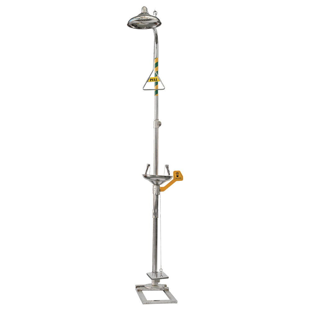 - With foot pedal for hands free operation to supply and control water flow through eye wash heads