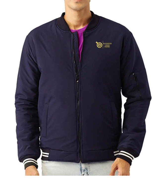 - The Zipper Bomber Jacket has a comfortable, regular fit with two side pockets and one zip pocket on the left sleeve.
